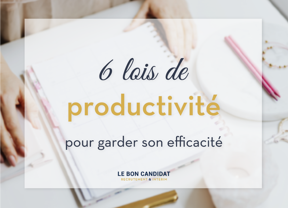 Être productif et savoir gérer son temps comme il le faut est, aujourd’hui, un élément essentiel en entreprise. En effet, beaucoup de personnes ont du mal à gérer leur vie professionnelle et leur vie personnelle. Mais en appliquant quelques méthodes, il est possible de concilier les deux.  Voici 6 lois à prendre en considération pour être plus efficace en gestion du temps et ainsi optimiser votre productivité.   Loi Parkinson « Le travail s’étale de façon à occuper le temps disponible pour son achèvement. » -- Cyril Northcote Parkinson   L’idée de la loi de Parkinson est que plus l’on a de temps pour réaliser une tâche, plus l’on prendra de temps pour la réaliser. Par exemple, si vous avez un mois pour réaliser une tâche, vous la réaliserez en un mois, tandis que si vous avez une semaine pour cette même tâche, elle sera réalisée en une semaine. Cela peut-être à double tranchant, c’est pourquoi il vaut mieux avoir des deadlines bien définies et s’y tenir. Attention toutefois à ne pas vous imposer de deadlines trop courtes. Loi d'Illich « Au-delà d’un certain seuil, l’efficacité humaine décroît, voire devient négative » -- Ivan Illich   De nos jours, on mise énormément sur la productivité. Mais à trop travailler, on risque le surmenage. La loi d’Illich insiste sur l'importance de faire des pauses de temps en temps afin de ne pas baisser en productivité.     Loi de Carlson « Un travail réalisé en continu prend moins de temps et d’énergie que lorsqu’il est réalisé en plusieurs fois »   D’après Carlson, le multitasking est à bannir. En clair, lorsqu’on travaille sur une tâche sans interruption, alors celle-ci prendra moins de temps. Soyez concentré·e sur votre mission afin de la finir plus rapidement que si vous étiez sur plusieurs fronts. Mieux vaut porter toute son attention sur une seule tâche plutôt que se mélanger et perdre en productivité.     Loi de Murphy « Tout ce qui peut mal tourner va mal tourner. » - Edward Aloysius Murphy Jr.   Malheureusement, on sait que dans les projets, des imprévus peuvent arriver à tout moment. La loi de Murphy prévoit que s’il existe une possibilité que quelque chose se passe mal, alors ça sera le cas. C’est en fait une loi d’avertissement exprimant qu'il faut essayer d’anticiper au maximum les imprévus et les éventuels retards.   Loi de Laborit Selon la loi de Laborit, en début de journée, nous sommes bien plus productifs que le reste de la journée. Afin d’éviter la procrastination, il faut donc prévoir de faire vos tâches les plus difficiles ou qui demandent le plus de concentration, le matin.   Loi du mouvement de Newton Il existe la règle des 2 minutes : lorsqu’on est en mouvement, il est plus facile d’entamer la prochaine étape. Donnez vous 2 minutes pour effectuer une tâche, une fois lancé, vous n’aurez aucun mal à continuer. Ces 6 lois peuvent vous aider à être plus productif dans vos objectifs professionnels mais aussi dans vos objectifs personnels. Vous pourrez ainsi mener à bien vos projets sans tomber dans la procrastination. Toutefois, ces 6 lois sont à adapter à vous-même. En effet, la productivité reste propre à chacun !